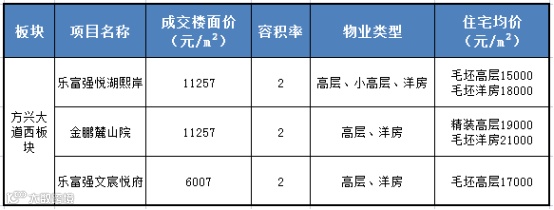 板块内目前在售新房项目有3个,物业类型均以高层和洋房搭配。目前毛坯高层均价在1.5-1.7万/m²左右,毛坯洋房均价在1.8-2.1万/m²左右。