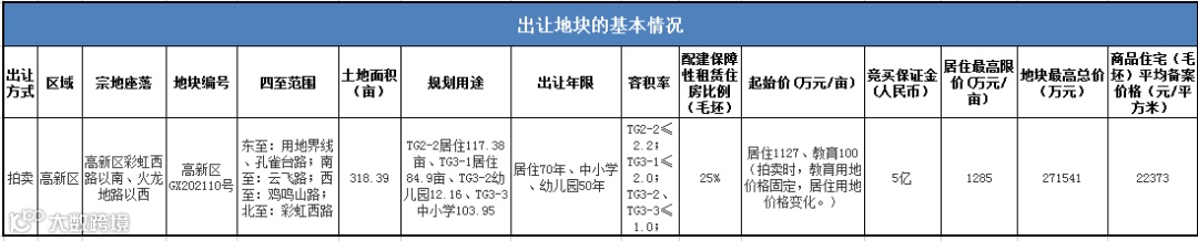 高新区GX202110号地块位于高新区彩虹西路以南、火龙地路以西,总面积318.39亩。