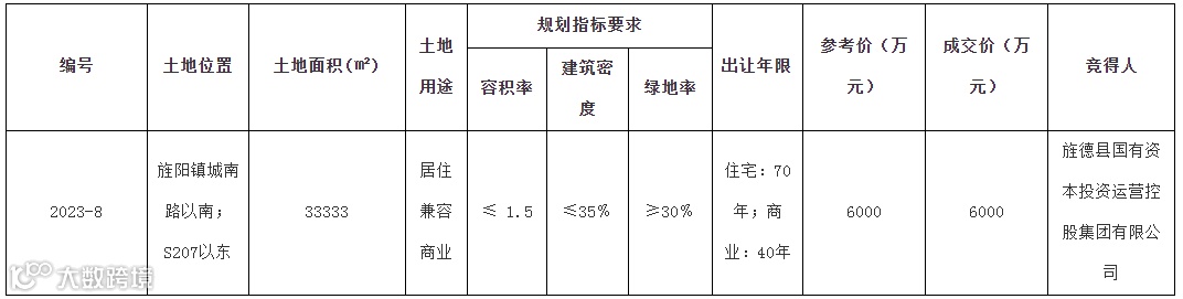 宣城旌德县2023-8号国有建设用地使用权出让中标公示
