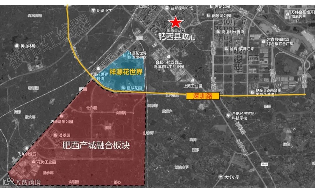肥西产城融合板块位于肥西县西南方向,祥源花世界南侧,深圳路以南。