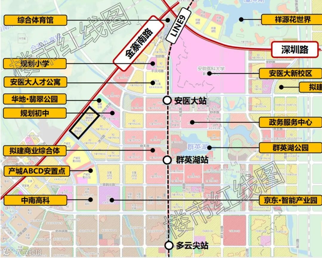 配套方面,金寨南路和深圳路,可快速通达合肥市区,规划中的地铁9号线、群英湖公园、安徽医科大学新校区、拟建政务服务中心、各类场馆以及商业综合体可满足日常生活需求。