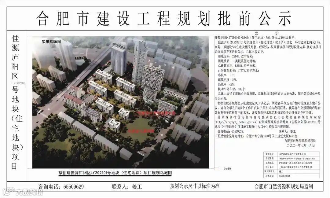 项目位于肥西北路与北一环路交口东南角,拟建8栋住宅,容积率1.7,计容建筑面积约3.7万㎡。