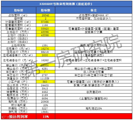 2、初步测算,目标地块起拍价下的利润在15%左右,限价下的利润率在10%左右,从利润率上来看,项目收益还是很可观的。