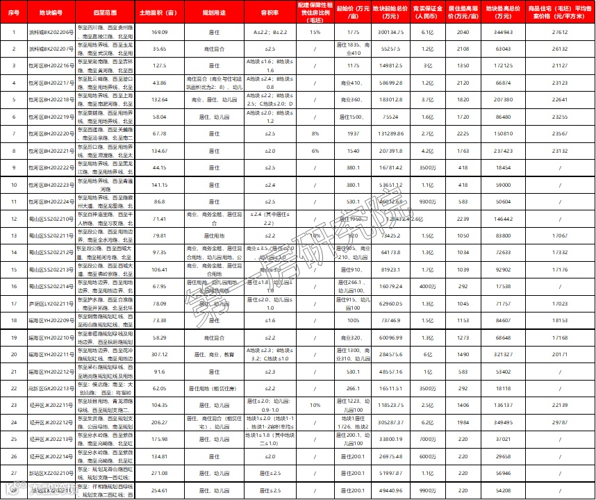 2、挂牌土地总结:从土地出让位置及挂牌条件不难看出,本次土地出让位置相对优质,尤其是滨湖区的两宗地块肯定会引来多家房企争夺,而出让规则整体上并未有大的变化,依旧采取“投报高品质住宅方案”的竞买方式,即:“价高者得+投报高品质住宅建设方案+摇号”的竞买方式。