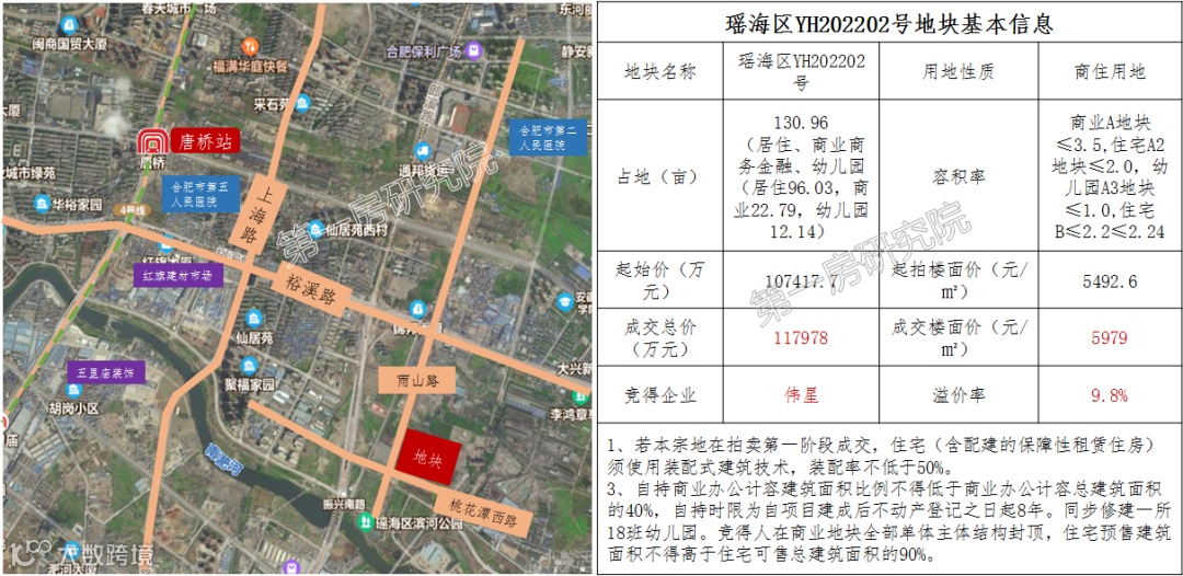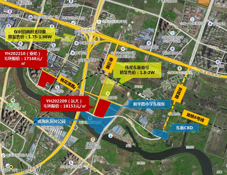 2022年合肥首轮集中供地,瑶海区出让涉宅地块4宗,其中2宗位于东部新中心。伟星东新壹号(YH202202号)、保利招商时光印象(YH202204号)。两宗地块当时都是近底价成交的。