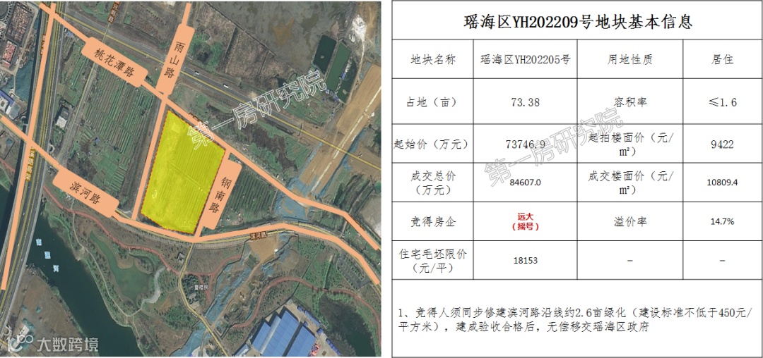 地块位于东部新中心板块,地块成交总价84607.0万元,楼面价10809.4元/㎡,溢价率14.7%,毛坯限价18153元/㎡,后期属于毛坯销售。伟星、华力、远大、招商4家房企参拍,最终由远大竞品质满分+摇号竞得。
