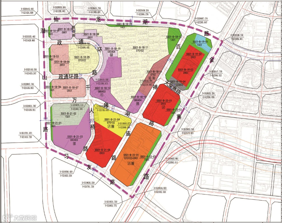 该地块位于万象城东侧,总面积约987.6亩。地块内规划有二类城镇住宅用地、商业用地、幼儿园用地、中小学用地等。