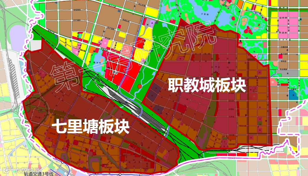 从未来土地供应来看,七里塘板块开发较早,板块基本已完成开发建设,未来土地供应稀缺。而职教城板块未来居住用地较多。