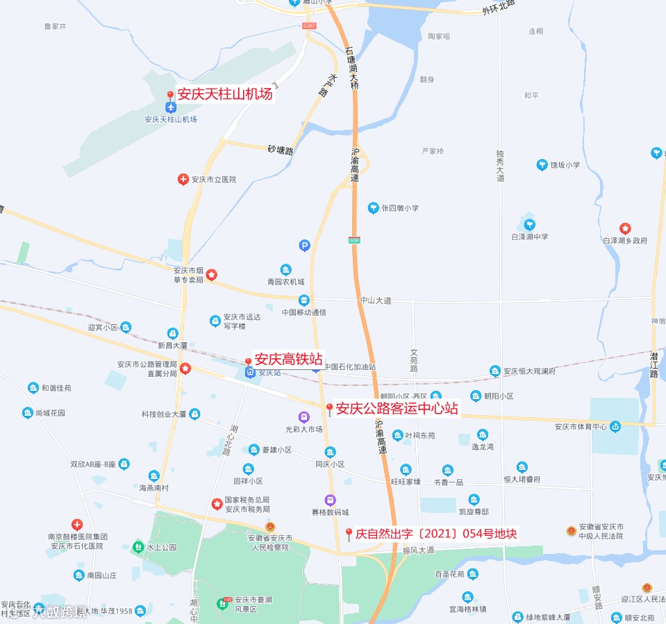 路沿路商业繁华,南起华中路、北至纬七路,是安庆市贯通南北、连接东西的交通要道;地块距离安庆高铁站约2.8公里、安庆机场约6.5公里,向北1.5公里可到达安庆客运中心站;周边目前有11、17、19、25、28、29、33路等多条公交路线,通达全城,另外G50沪渝高速口近在咫尺,通往省内外;整体上,地块交通通达度和交通便捷度高。