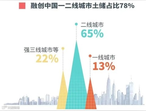 由于融创主要的布局都是一二线城市,小部分强三线,从近期土拍的市场行情来看,一二线土拍热度下降,但是土拍大部分都会成交,而三四线目前看土拍情况很不理想。流拍率极高,这对三四线土储多的企业来说,未来风险极大。