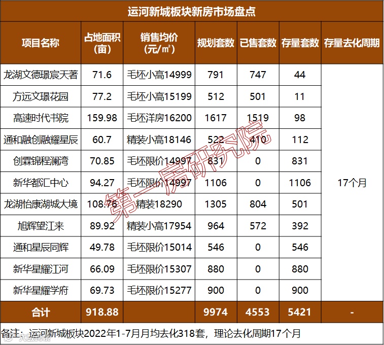 2、目前运河板块整体市场库存高企,同期在售项目多,去化周期高,后期市场竞争激烈可想而知,且运河新城的配套兑现相对缓慢,有些甚至中止,对板块项目未来的去化又增加了阻力;