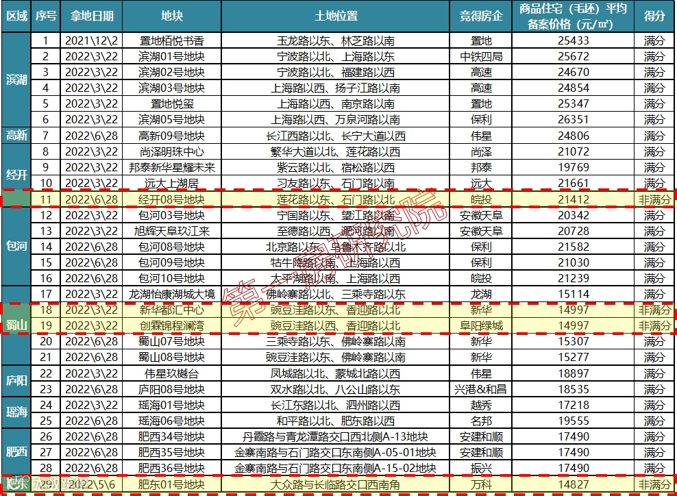 自开始实行竞品质土拍模式,到现在为止,合肥已经有了29个竞品质项目,当然也不全是满分竞品质的项目,其中4宗未达满分的项目的。