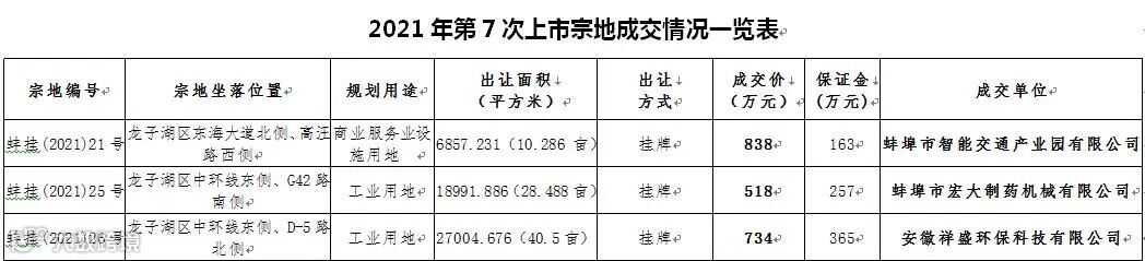 蚌埠市龙子湖区3宗土地使用权成功出让。