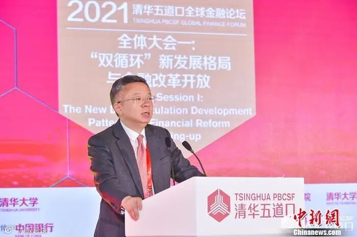 22日,在2021清华五道口全球金融论坛上,中国人民银行副行长李波发表讲话