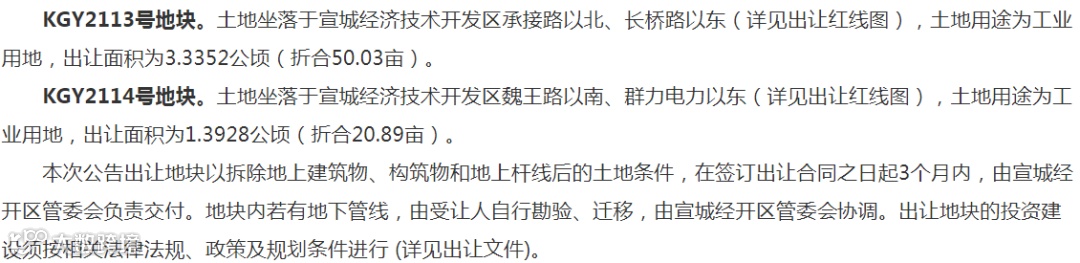 宣城市将出让经开区2宗工业用地使用权,申请人可于6月17日到7月6日下载出让文本,交纳竞买保证金后,在线提出竞买申请。