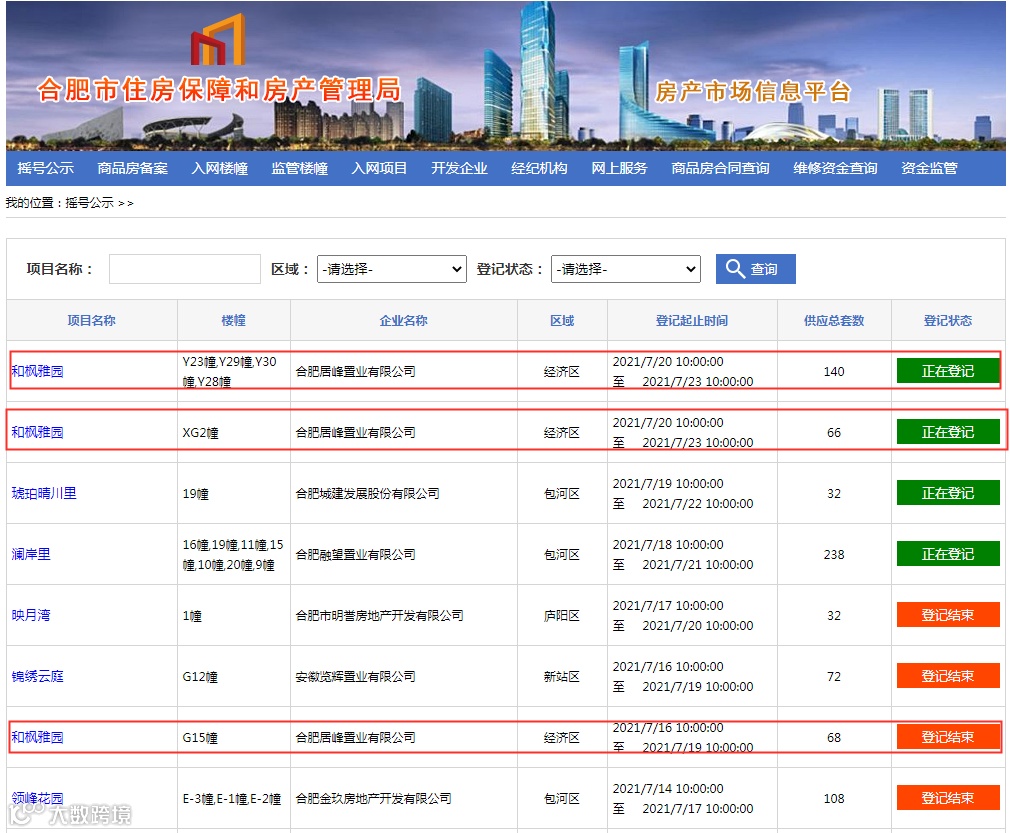 上周,公园万象登记的高层G15#楼,具体结果尚未公示。
