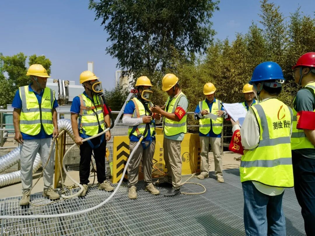 演习开始之前,安全管理人员详细介绍了相关防护用品及应急救援器械的使用方法,随后按照“先通风、再检测、后作业”的原则开展有限空间作业演练。