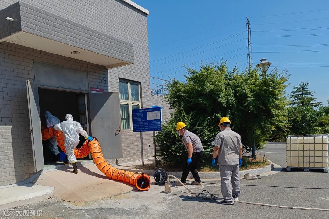 抢险救援组架设通风机,使用水管对废液桶进行冲洗,将泄漏的废液收集到吨桶内,清理废液桶,将破损的废液桶移至仓库外安全处收集,按规范要求进行处置。