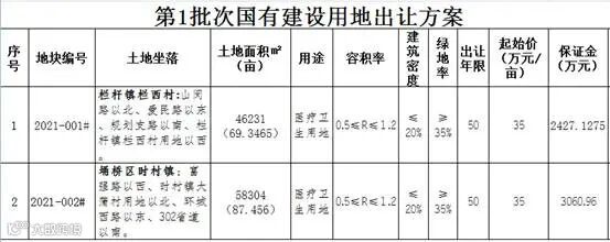 宿州市埇桥区将挂牌出让2宗医疗卫生用地使用权,分别位于栏杆镇栏西村和时村镇。