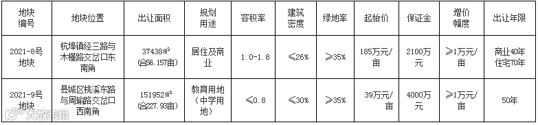 另1宗为教育用地,位于县城区桃溪东路与周瑜路交岔口西南角。