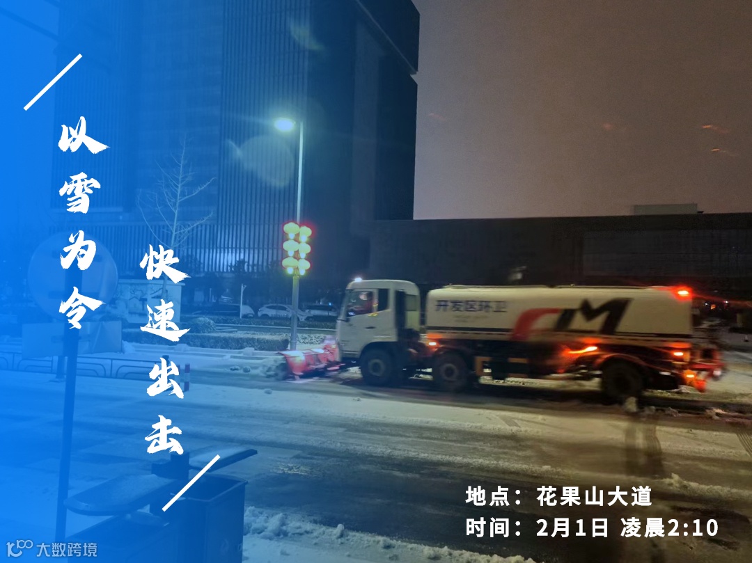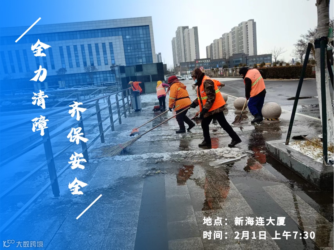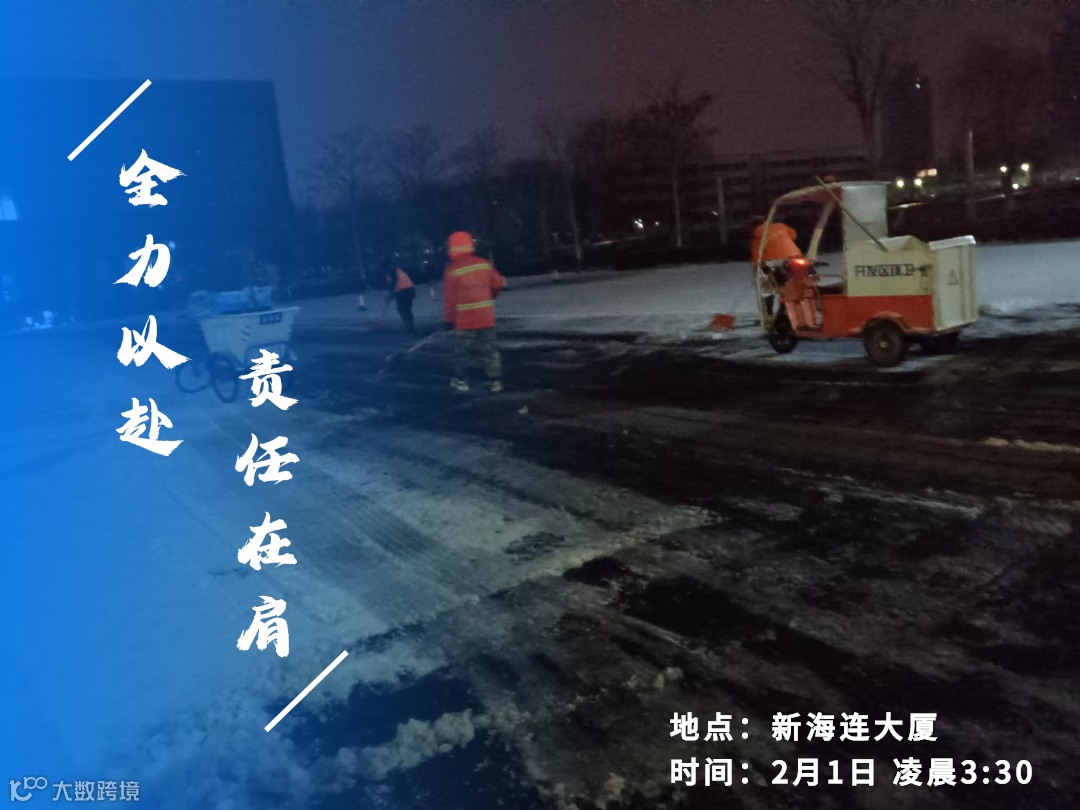 2月1日凌晨,火红的灯笼高挂在整洁的街道两旁,夜色中临近春节的开发区沉静在祥和、喜庆的的氛围里。一场雨雪夹杂着寒潮突袭而来,路面迅速积雪结冰,给群众出行带来较大隐患,新海连集团迅速响应并于凌晨两点紧急启动扫雪除冰应急预案,全力以赴迎战风雪。