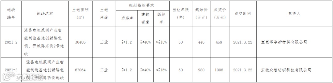 宣城华宇新材料有限公司和安徽众智纺织科技有限公司分别竞得泾县的2宗地块。