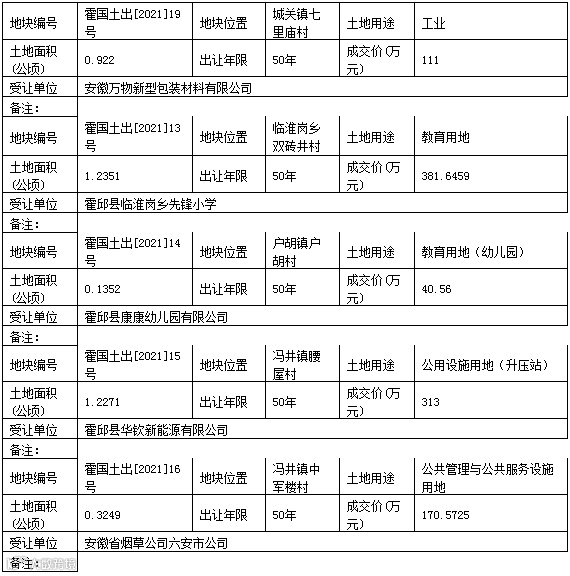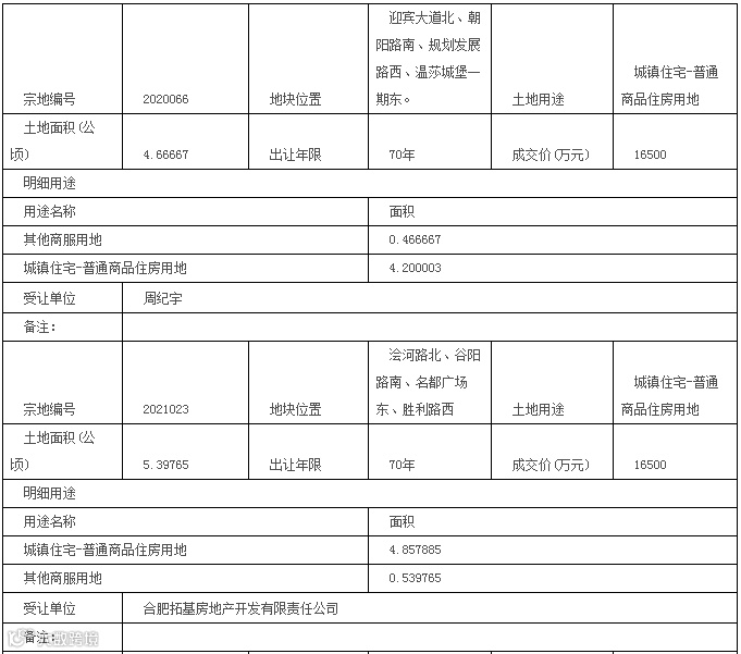 蚌埠市固镇县2宗城镇住宅-普通商品住房用地、1宗其他商服用地使用权成功出让。