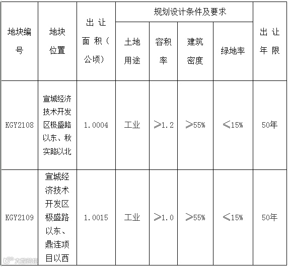 宣城经济技术开发区极盛路以东2宗工业用地使用权分别由安徽福艾瑞金属科技有限公司、安徽顺鼎阿泰克科技有限公司竞得。