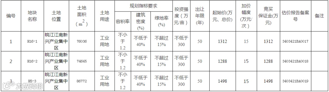 马鞍山市有3宗土地使用权将出让。