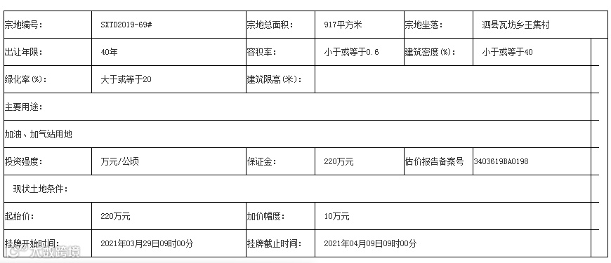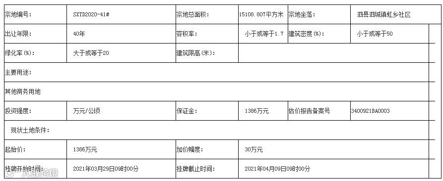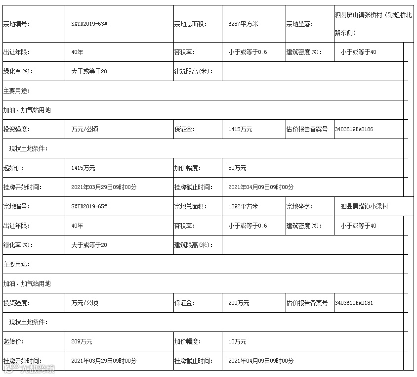 宿州市泗县将挂牌出让11宗土地使用权,挂牌时间均为3月29日到4月9日。