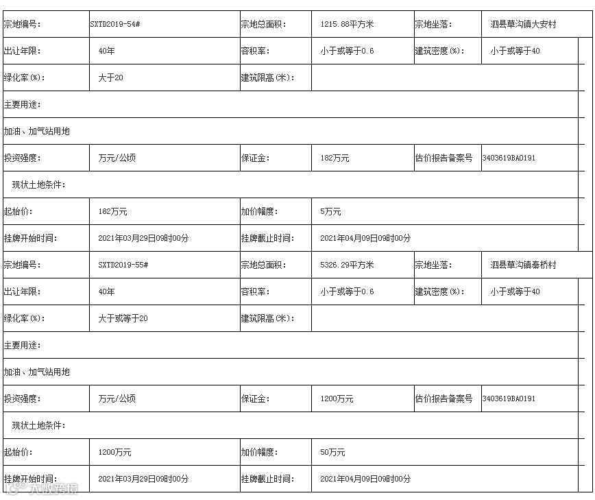 SXTD2019-43#等9宗地块规划用途全部为加油、加气站用地,使用权出让年限为40年,