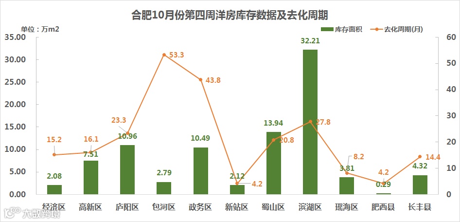 从合肥上周洋房整体库存面积情况来看,虽然包河区和政务区是去化压力较大的区域,主要是由于上周备案成交洋房数量较少的缘故,实际库存面积数值会比该数值要小很多。