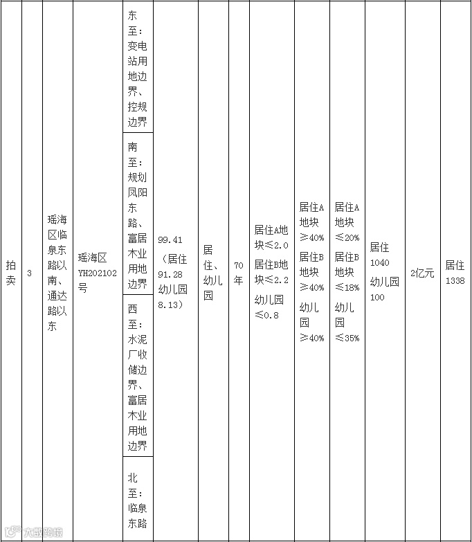 瑶海区临泉东路以南、通达路以东YH202102号地块规划用途除居住外,还包括幼儿园,使用权出让年限为70年。
