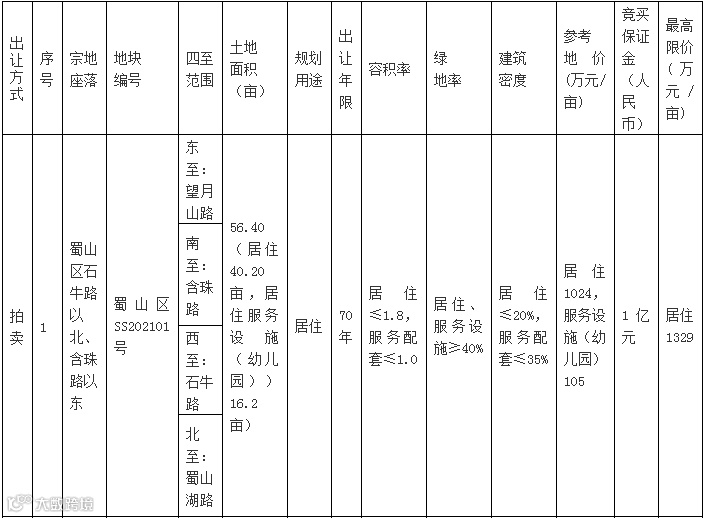 其中,有3宗地块为单一的居住用地,分别是蜀山区石牛路以北、含珠路以东SS202101地块,新站区规划的秋蒲路以南、春晓路以东XZ202101号地块,新站区梨乡路以南、春晓路以东XZ202102号地块。