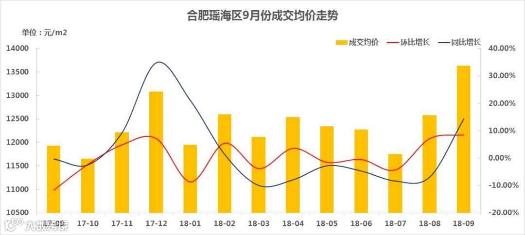瑶海区9月份成交均价为13638.72元/㎡,环比上涨8.42%,同比上涨14.35%,是自今年7月份以来连续第三月上涨。