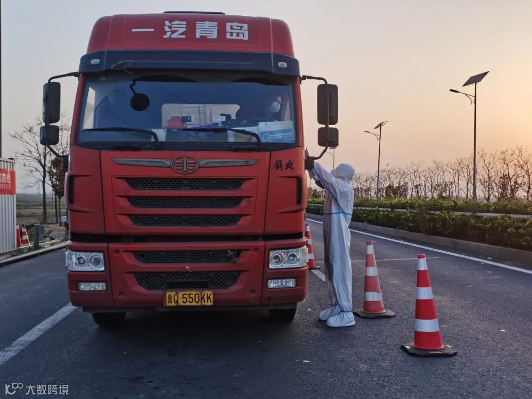 “您好,请出示一下闭环码、健康码、行程码、核酸检测报告”,在宋庄高速卡口执勤的新海连志愿者,严格查验每一辆驶入开发区车辆的相关信息,确认无异常后对车辆驾驶室张贴封条。