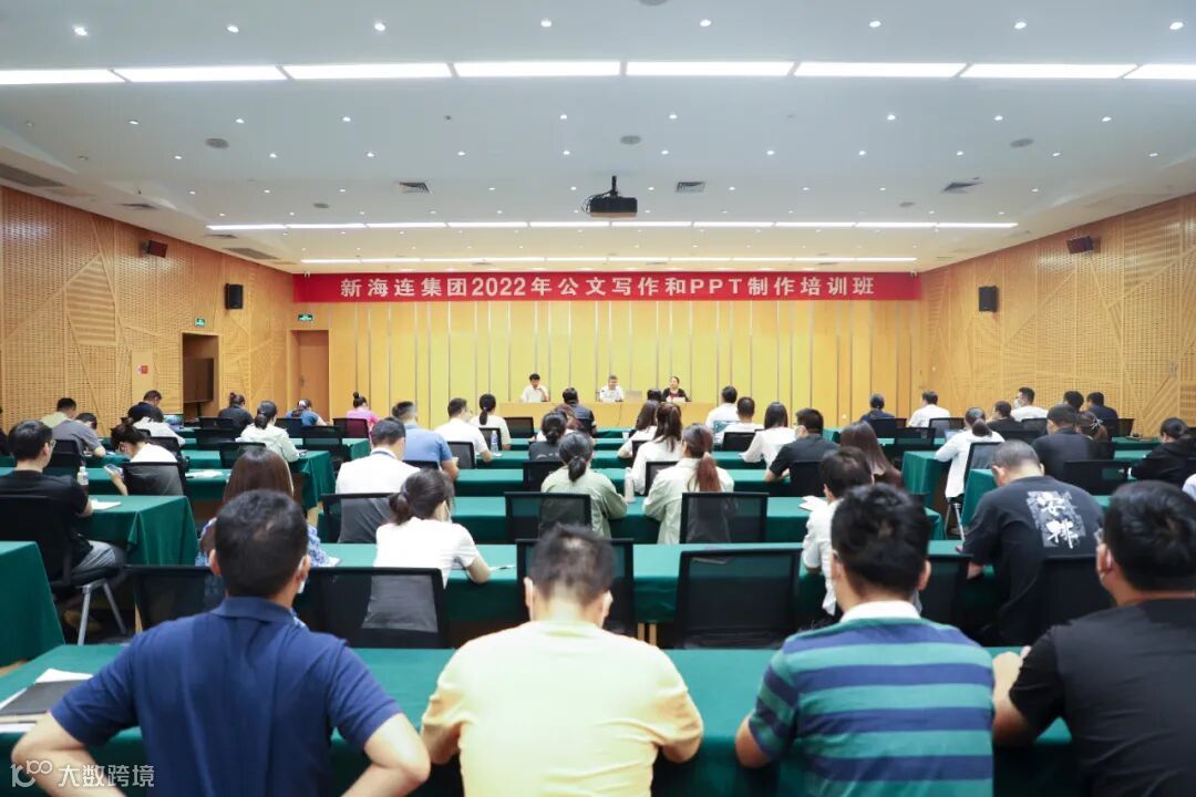 9月8日,新海连集团举办了2022年公文写作和PPT制作培训班,邀请了江苏海洋大学文法学院院长吴明忠教授、江苏海洋大学文法学院中心主任郑佳武两位老师授课。集团副总经理张猛出席并讲话,集团各子公司、部门共90余人参加培训。