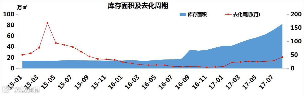 2、去年10月限购后,去化周期整体上在逐渐延长,8月去化周期为41.7个月,比7月延长了12.9个月。