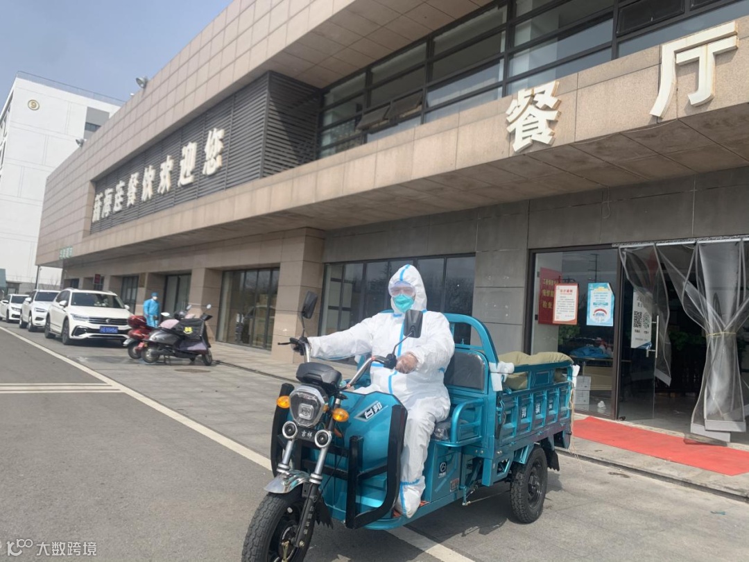 考虑到送餐量大,新海连集团特别为曾祥智购置了一辆电动三轮车,也组织了一支运输小分队协助他送餐。作为厨房工作人员,曾祥智每天接触大量的食材、餐食,为了保证隔离点每一位人员的健康安全,他每次都穿着防护服送餐,结束后进行全面专业的消杀再返回后厨。