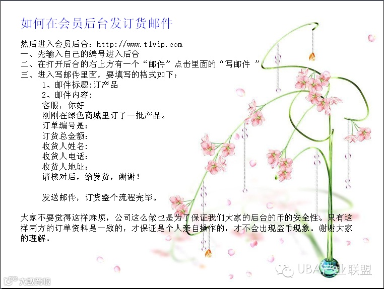 商城订货后一定要在会员后台发邮件以便于公司确认: