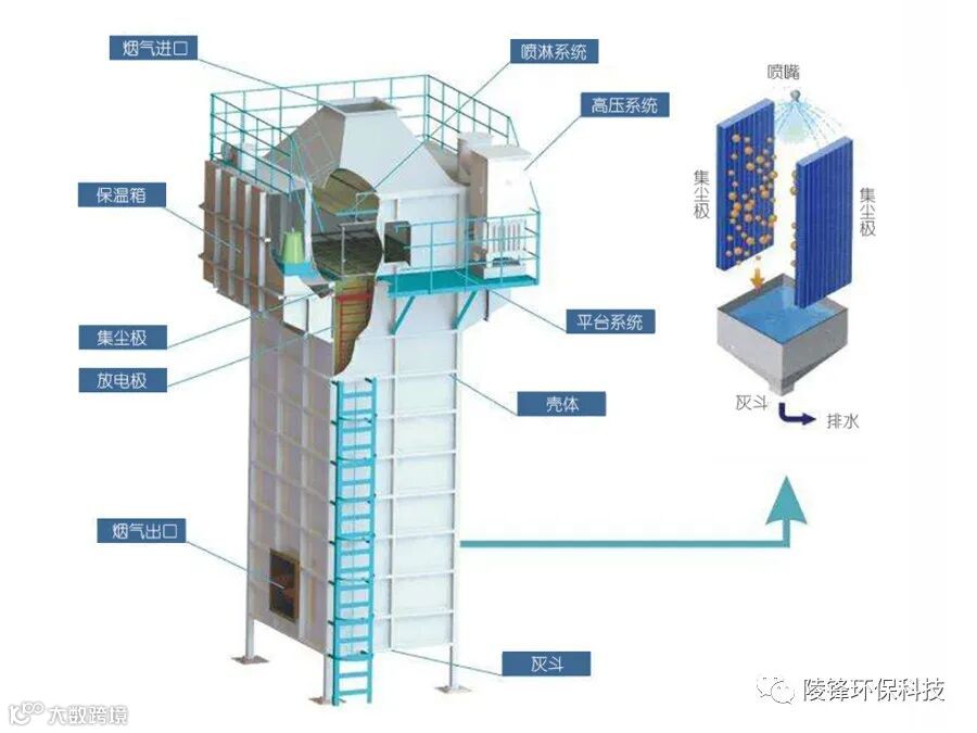 陵锋机电干式静电除尘器设备是利用高压电场产生的静电力使烟气中的粉尘荷电,并在电场作用下使荷电粉尘从气流中分离出来,分别向阴、阳极移动并粘附其上,然后通过振打装置振打清灰,使积灰落入灰斗,烟尘中含油、且湿度大,通过湿式清洗在极板上向下自流至下部锥斗达到收尘目的的除烟装置。