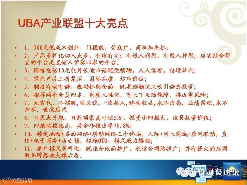详细咨询联系 UBA-正道系统-道明团 招商考察QQ群之一:181545261