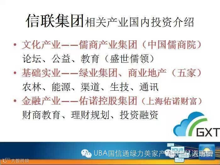 (2)公司为了更大更强更长久的发展,将国信通云通讯与绿色产业完美地结合起来形成UBA产业联盟项目,从2014年8月份正式起航,目前正处于快速发展的第一阶段,对于经营者绝对是最佳的时机,成功者往往是先机的发现者和把握者!