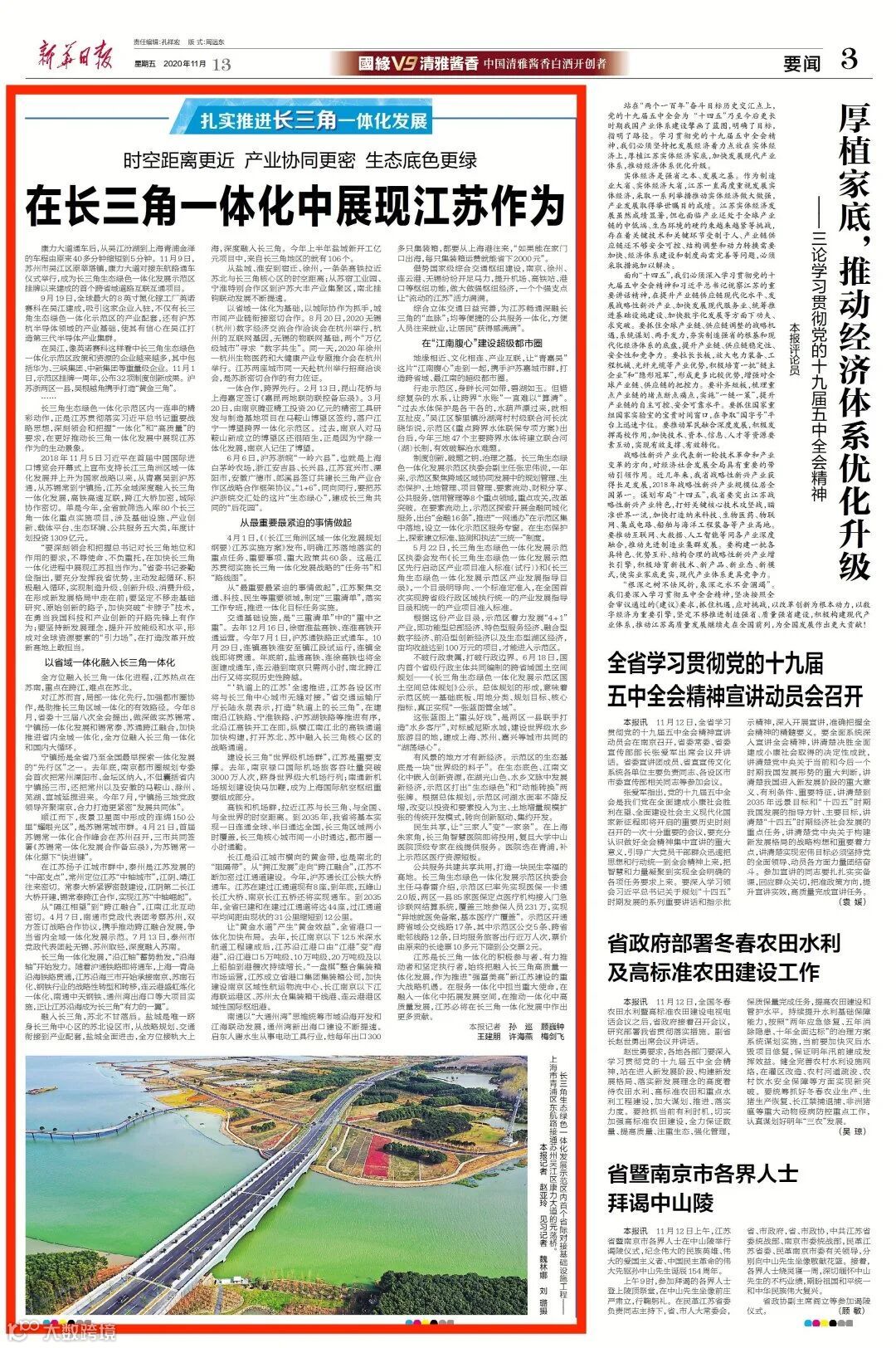 综合立体交通日益完善,为江苏畅通深融长三角的“血脉”;均等便捷的公共服务一体化,方便人员往来就业,让居民“获得感满满”。