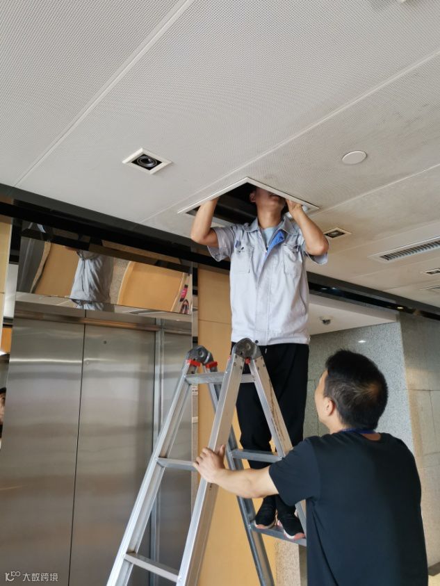 抢修工作刻不容缓。今年7月的一天,工程部强电组正在排查新海连大厦主楼照明损坏情况并进行就地维修,这时转接电话忽然响起,报修15层电梯厅空调漏水严重,危及电梯运行。工程人员快速处理好手中的工作,立刻背起工具包,扛上人字梯,迅速到达指定地点,此时强电主管俞涛已同步收到消息到达现场并果断关停空调,他一把抓过工具,找准位置,登上梯顶,掀开检修孔盖板,只见他两手一撑,双腿上提,整个身体敏捷地钻进顶棚,顶棚上方高度不足一米,吊筋、桥架、风管及各类水管纵横交错,狭窄处仅容侧身通过,他猫着腰,手脚并用,在黑漆漆的狭小空间里侧着身子打开手提灯,踩着既窄小又多处有钉的顶棚龙骨架小心翼翼地仔细排查,终于找到故障点,原来是因为空调冷凝水下水管道堵塞导致水满外溢,经过紧急疏通后排水管畅通无阻,漏水情况迎刃而解。由于物业工程人员的反应迅速、处理得当,避免了一起不必要的经济损失。浑身沾满灰尘的俞涛刚洗完手,掸完衣服上的脏物,维修电话再次响起,大家径直向另一个维修点匆匆赶去。