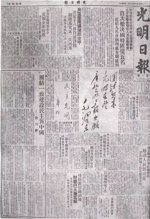 由民盟主办的大型综合性日报《光明日报》在北平创刊。章伯钧任社长,胡愈之任总编辑。
