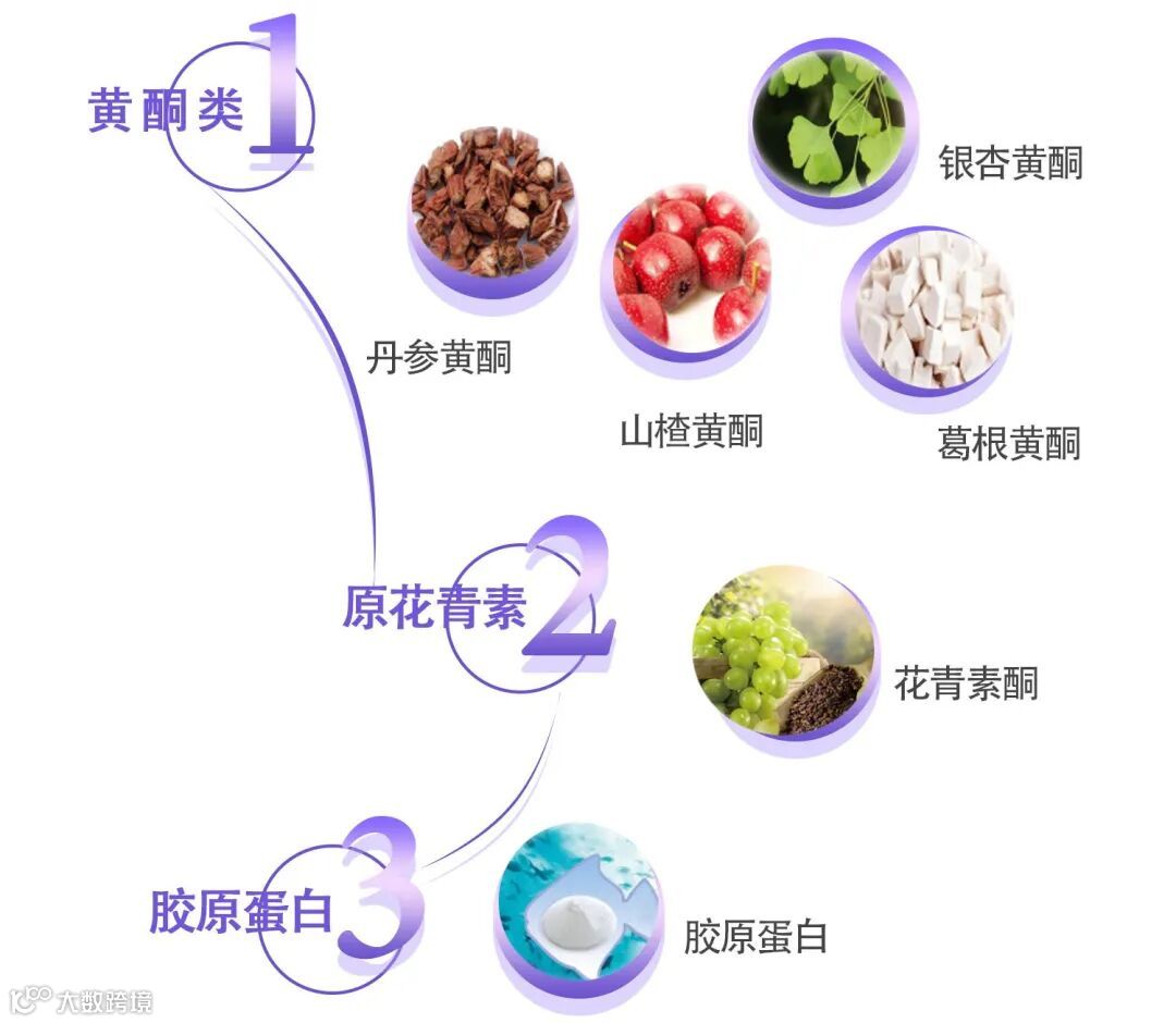 根据中药配伍理论,合理选择原料,再配合原花青素和胶原蛋白相辅相成,协同增效。