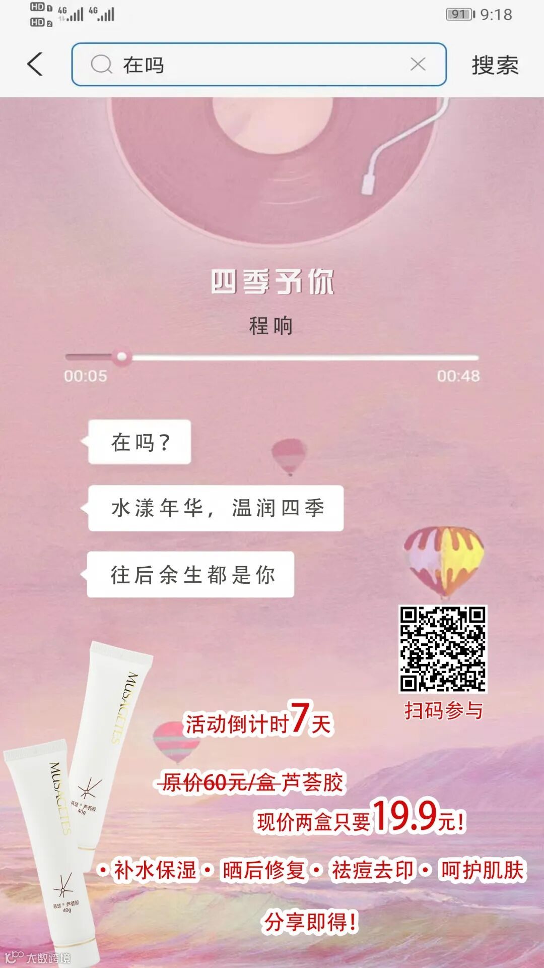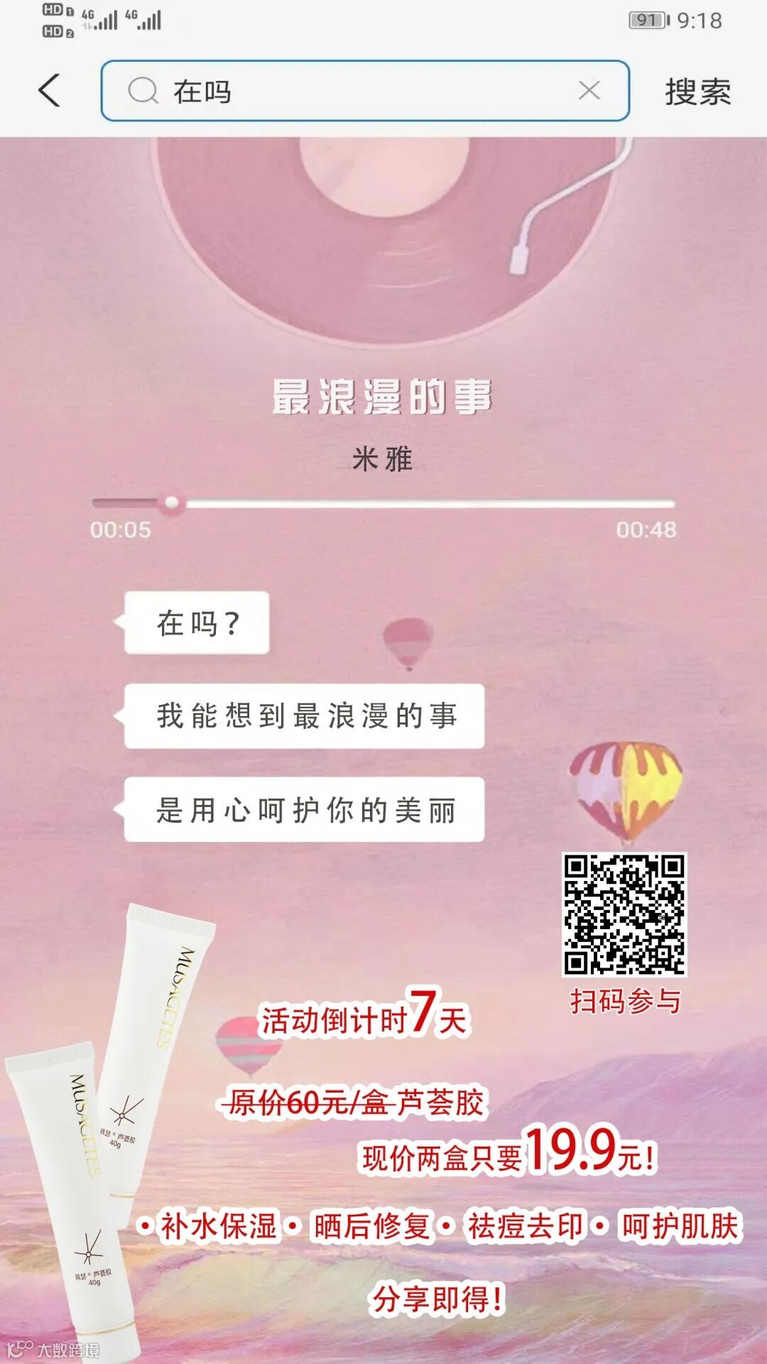 没想到在支付宝上搜“在吗”,就会自动播放一首情歌,还会出现撩人的情诗。