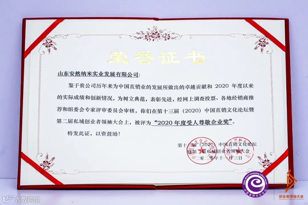 聚焦中国直销行业建设,关注中国直销行业发展,安然公司荣获含金量极高的2020年度受人尊敬企业奖,为行业树立榜样,引领市场主体良心发展。