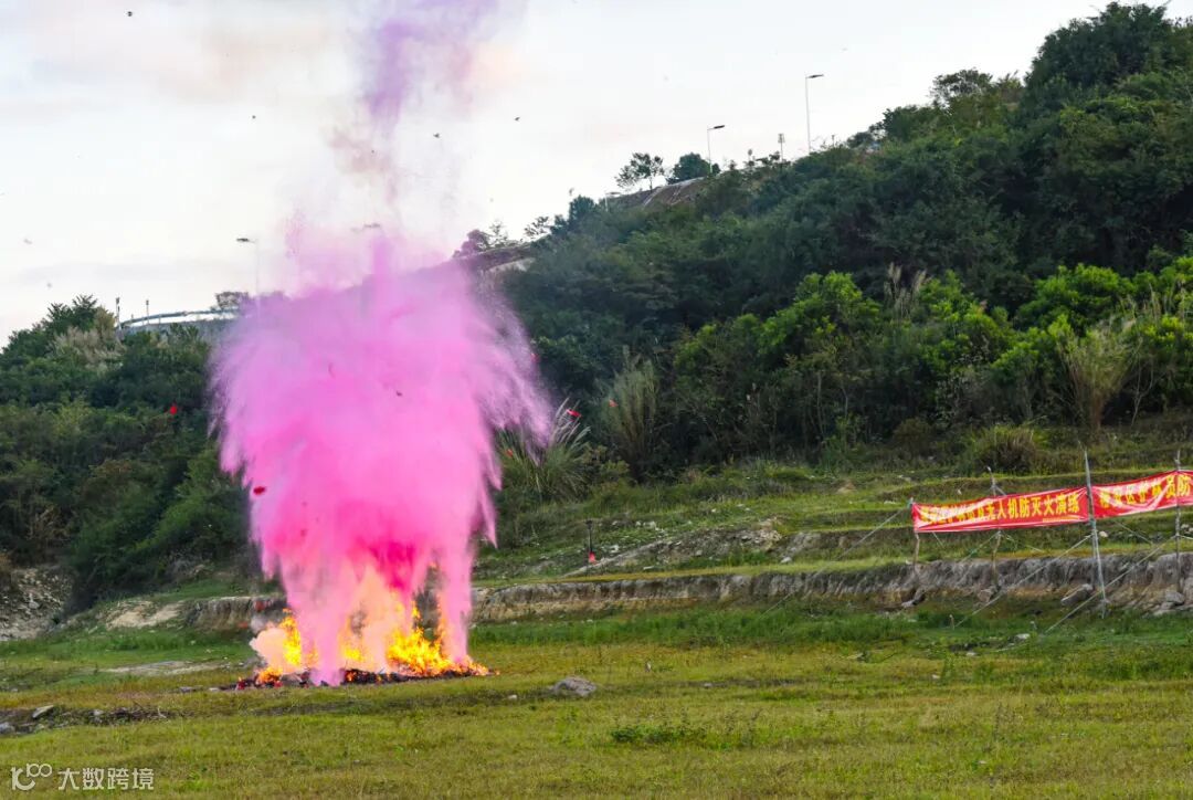演练现场模拟发现火情之后,护林队携带消防灭火设备及2架新型的消防灭火无人机迅速赶赴现场。由于火情地点人员不易到达,护林员先派出侦察无人机飞赴火场上方观察火情,并将火场的图像实时回传给现场指挥员,在了解了火情具体位置后,立即派出两架可携带水剂灭火弹的消防灭火无人机,迅速瞄准火场中心,投下灭火弹。只见灭火弹按预定设置的引爆高度在火场上方准确引爆,瞬间压制住了凶猛的火势。地面救援人员马上操控灭火工具,扑灭明火。最终,大火被成功扑灭,演练结束。